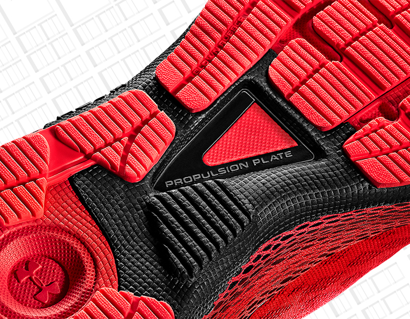But that’s not all, obviously. Aside from the sensors you can sync to your smartphone (or wristwatch — see below), the Machina’s got a few Deus-worthy physical improvements due. In the heel there’s something UA calls a “2-pronged carbon-filled Pebax® spring plate”, which we’re choosing to believing is a magical sproingy thing that speeds you on your way. And that’s not far from the truth. The company’s also worked out a way to alter its HOVR midsole to give runners improved energy return by removing some of the cage while keeping the support you want in that area.