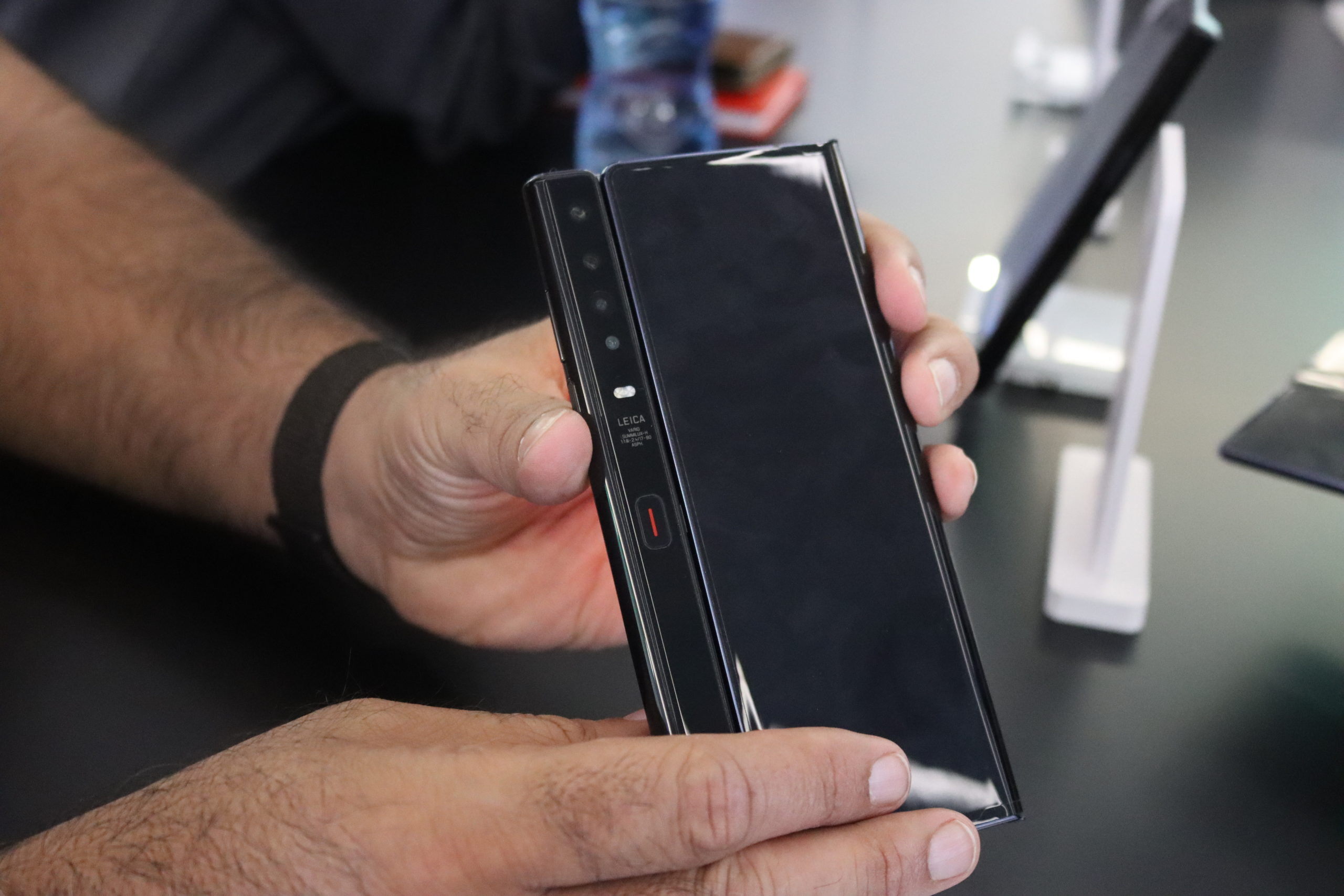 Which leaves two things — perhaps the most important items on the list, depending on the user. One was the camera array, which is Huawei’s Leica quad-system (40MP+8MP+16+ToF) plonked onto the ‘back’ of the handset. We’re blaming the environment for that one — we could use the camera but since we weren’t allowed to take it out of the presentation room, there wasn’t a whole lot to learn about it. It’s a camera. It takes photos. We’ll know more when we can take it out into the world.