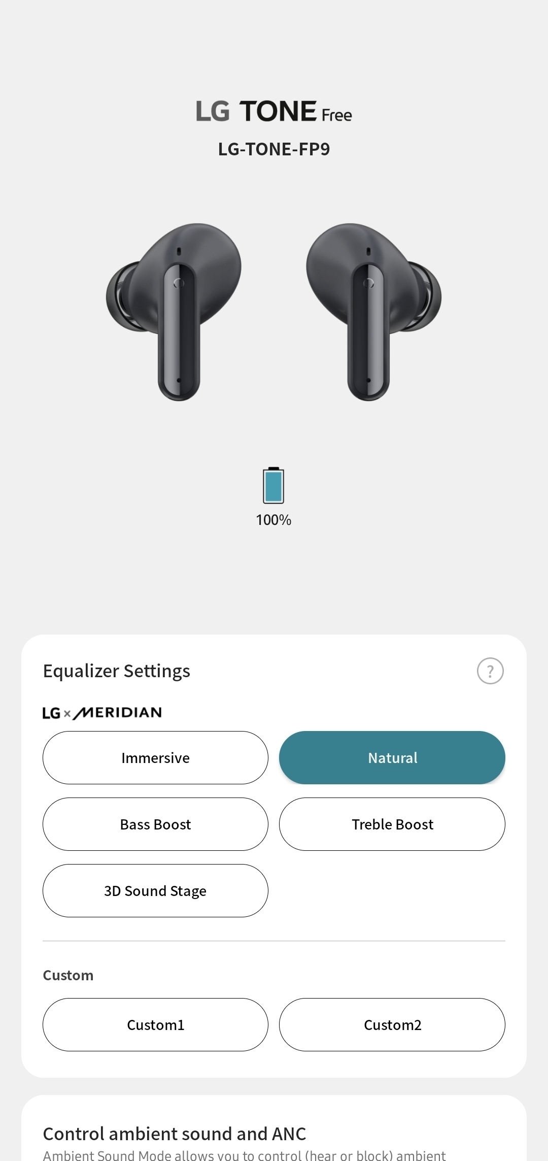 LG has partnered with Meridian for the sound of the Tone Free FP9. That’s the same British company that handles the sound for LG’s previous earphones as well as its soundbars and portable speakers. That tuning allows them to punch above their weight when it comes to the sound profile. That is, once you’ve turned off the default bass boost. The Tone Free FP9 offers a relatively flat frequency response.