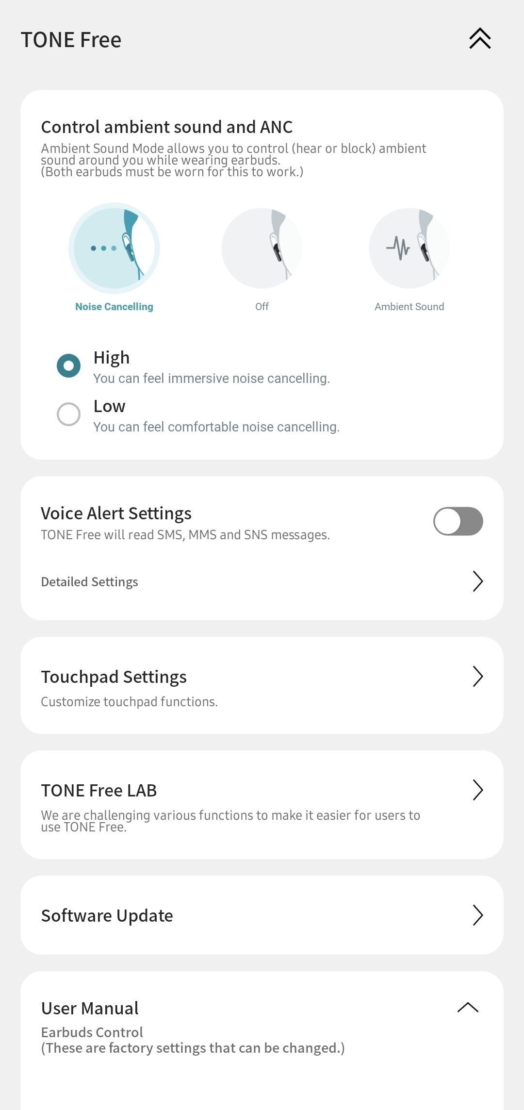 These, like most decent wireless earbuds on the market, offer active noise cancellation. When you’re in a quiet to moderate environment the FN9s manage to dampen (not block out) most sounds you’re trying to avoid. Aircons, heaters and office chatter fade into the background, especially when set to the high ANC setting. If you feel that ANC pressure there’s also a ‘low’ setting.