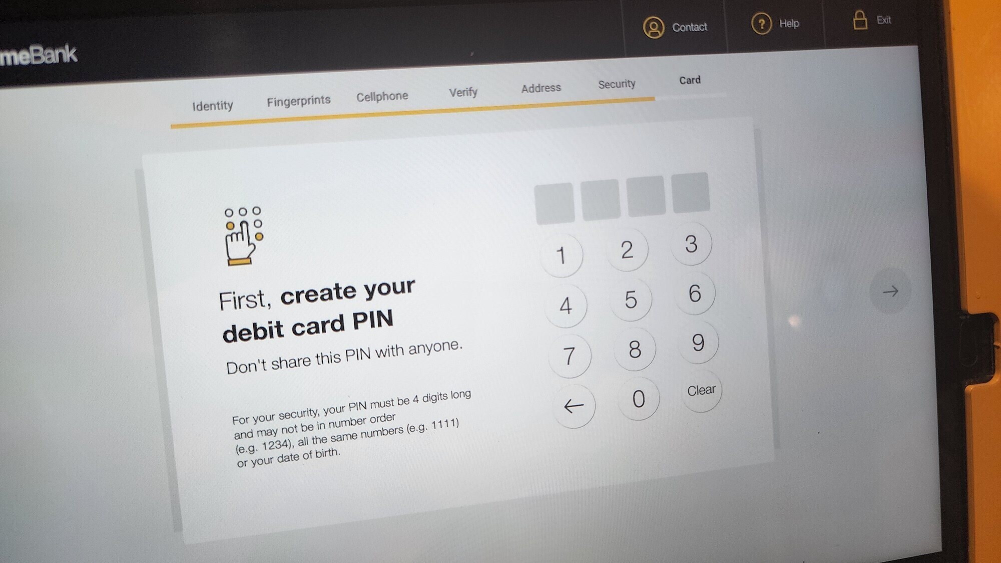 There are seven steps to clear, most consuming mere moments. First, users confirm their ID numbers. Then both thumbs are scanned in, for security reasons, before a cellphone number is linked. A one-time PIN is sent (which is why you need your phone). Pop that in and you’re off.