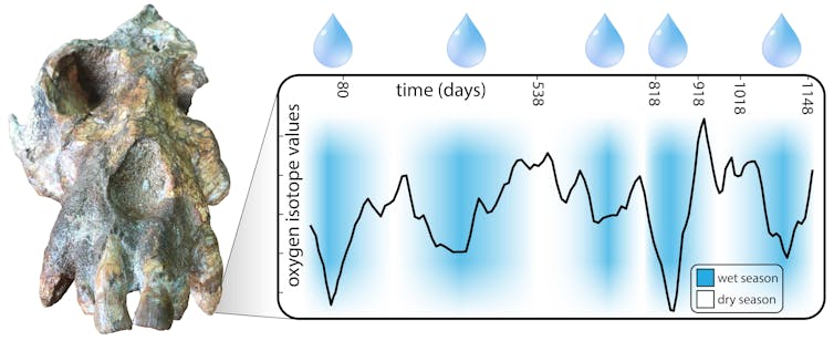 We conclude our work by comparing data from Afropithecus to earlier studies of fossil hominins and monkeys from the same region in Kenya. Our detailed microsampling shows just how sensitive tooth chemistry is to fine-scale climate variation.