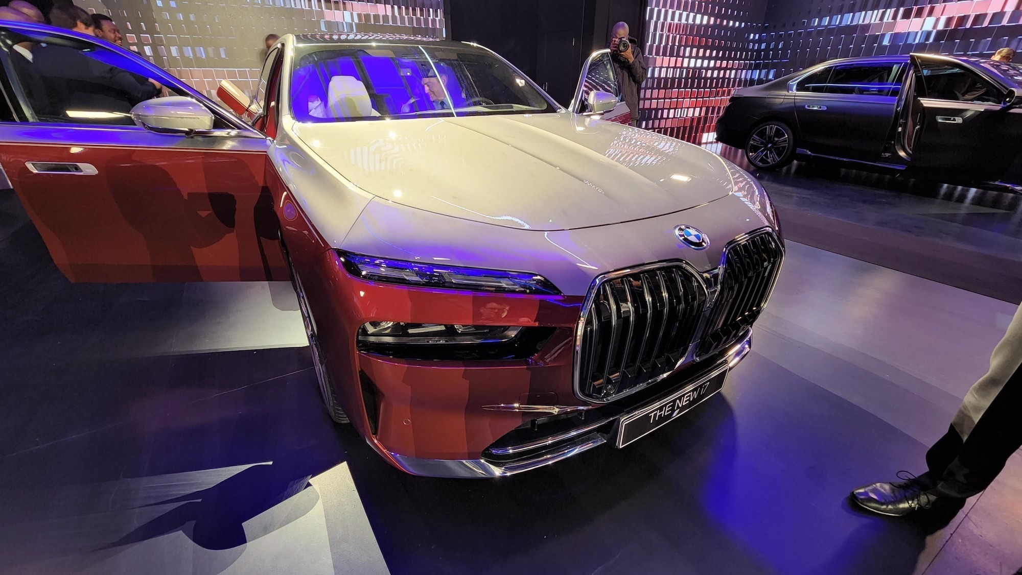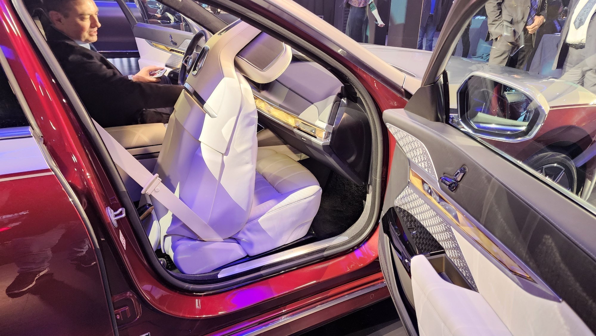 BMW’s new i7 electric sedan has many of the same functions going for it. There’s a difference available for the exterior, though. The German motor company is offering two-tone paint for the first time, something it compared to the folks at Rolls Royce. That comparison came up with regards to the 7 Series’ size — it was a bit of a trend on the night.