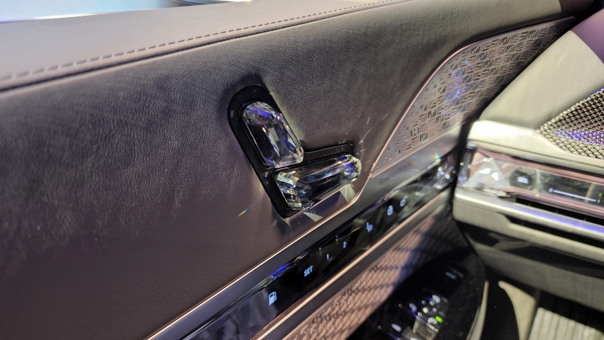 The front seats are more or less identically appointed. Swarovski crystals are embedded in strategic places. They’re functional, for the most part. The angled lumps aren’t just sticking out for the sake of it. But, with the BMW i7, we’re considerably more torn about where we’d prefer to sit. The 7 Series is easy — let a driver take care of matters. But what we really want is to get behind the steering wheel of BMW’s massive electric sedan and see what it can really do.
