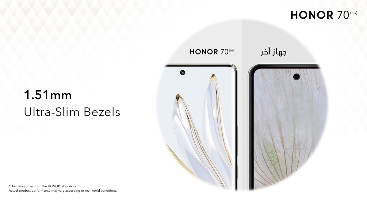 Delivering unparalleled visuals, the HONOR 70 5G comes with a 6.67in OLED 58o Curved Display and 1.51mm ultra-slim bezels on both left and right frames, bringing users an exceptional screen-to-body ratio of 93.27%, higher than any of the other popular smartphones on the market today.