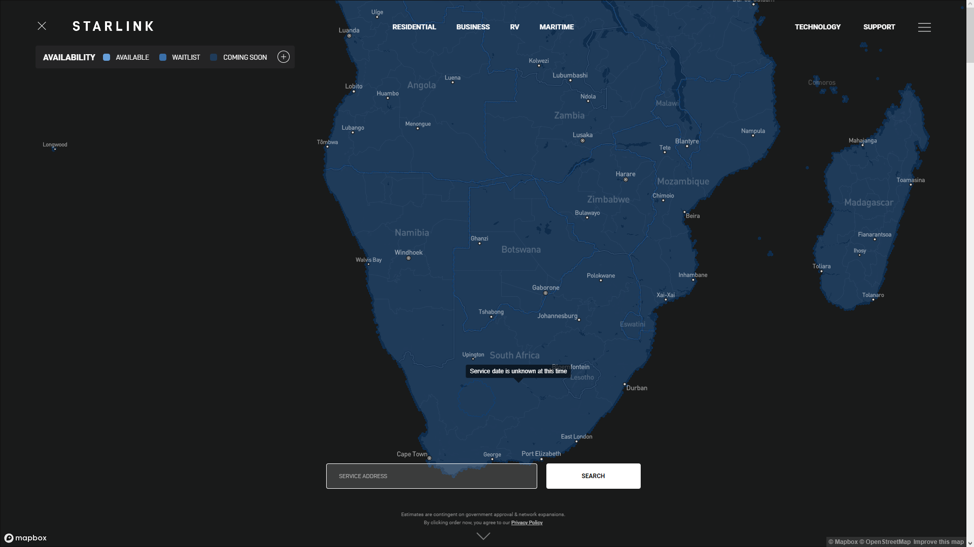 We’re always keeping an eye on internet things. The Starlink coverage map is no exception. We’re aware of a dedicated Starlink coverage specialist whose only job is to refresh the page and tell folks when something changes. Well, that person realised yesterday, 14 September 2022, that the service changed from indicating it would be available in SA in 2023 to “Service date is unknown at this time”.