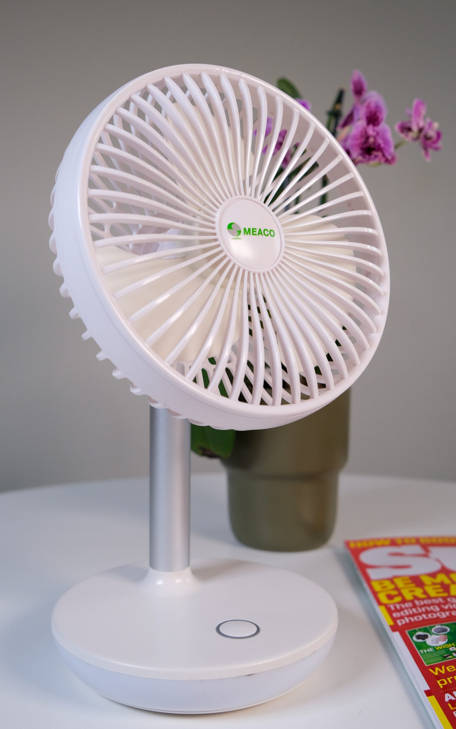 That’s because this uncomplicated device has a reason for its weight. Sure, the metal spine helps but there’s also a large battery in the base. The base hosts a small LED lamp, so you can see the area being cooled when the night is dark and full of terrors. Big deal, right? Battery-powered fans aren’t anything new. But none of those critters was made by Meaco, which has a slight obsession with moving air around.