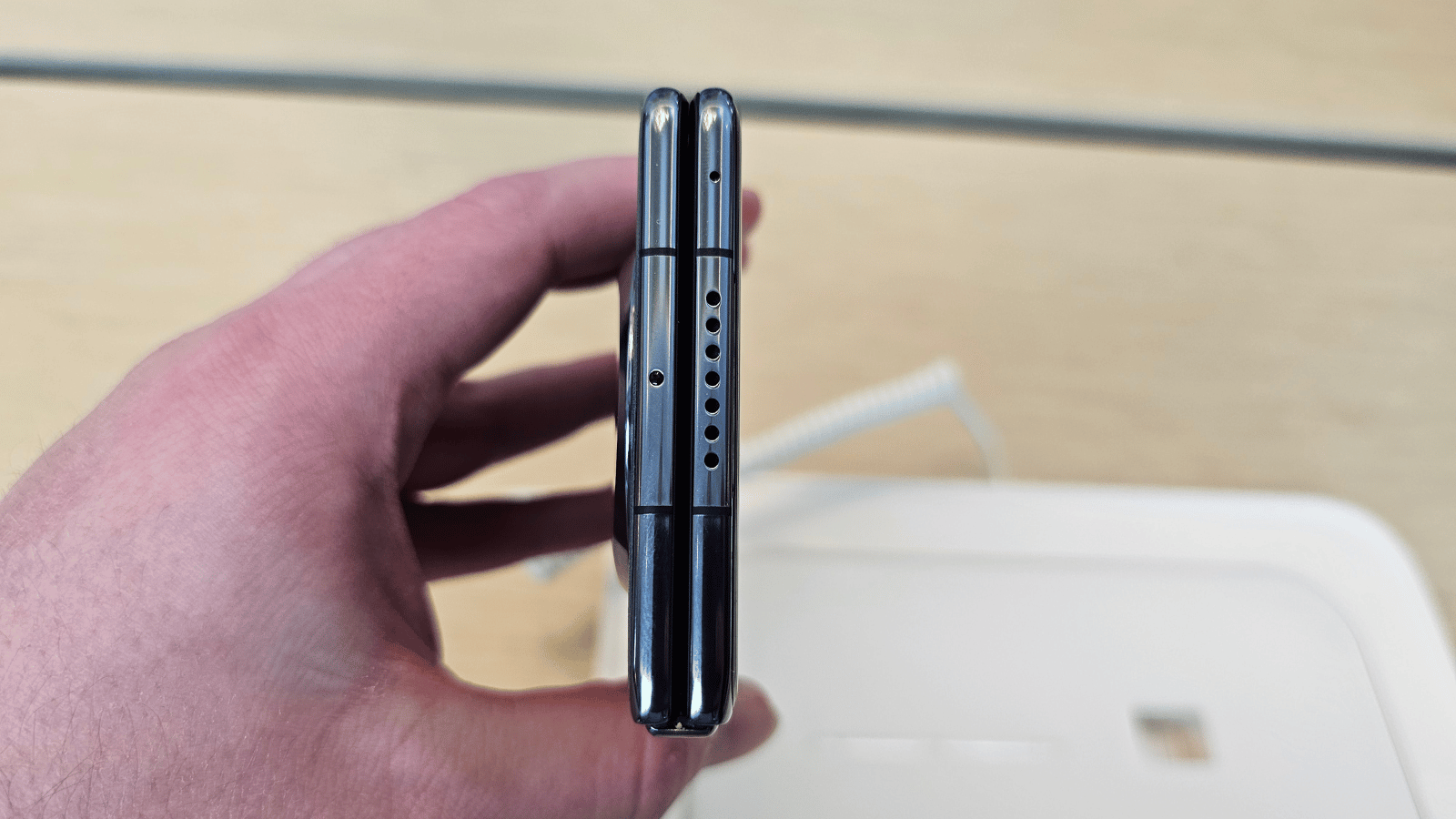 Thankfully for anyone with decent eyesight and opposable thumbs, the Mate X3 does not follow the Mate Xs2’s design but rather that of the Mate X2 (and almost every other foldable smartphone). It unfolds to reveal slim bezels, an inner 7.85in 2,224 x 2,496 120Hz OLED display, and an 8MP selfie cam.