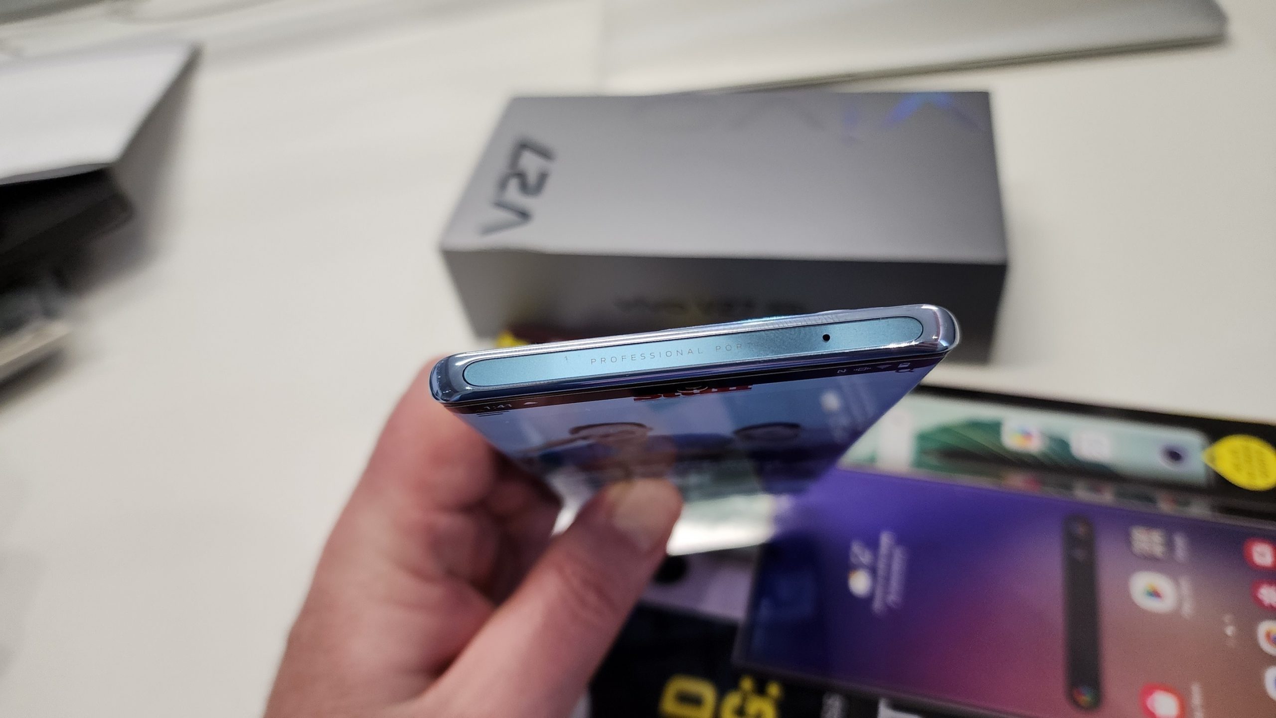 While Vivo opts for a metal allow rear panel instead of Samsung’s dual glass effort, the V27 5G suffers from a similar problem to those older devices. The rear end, despite the large camera bump, is incredibly slippery. That means it feels great in the hand but you’ll immediately stuff it into the clear rubber case Vivo includes with the handset. Thus negating that lovely design right after it impresses the pants off you. Ah, well.