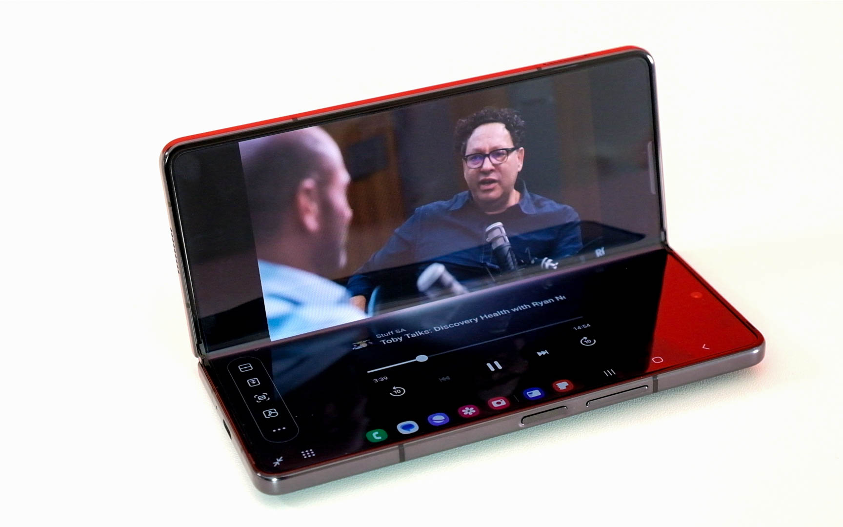 Samsung’s optimised some apps, and partnered up for a few others, to make its folding screen more of a practical affair. We’ve used Folds in a keyboard/display orientation for a while now and that’s just as good as it ever was. Samsung wants owners to have more tailored experiences, so there’s a little pop-out bar on the side and the bottom bar, which always includes the last four used apps, makes for easy switching between tasks.