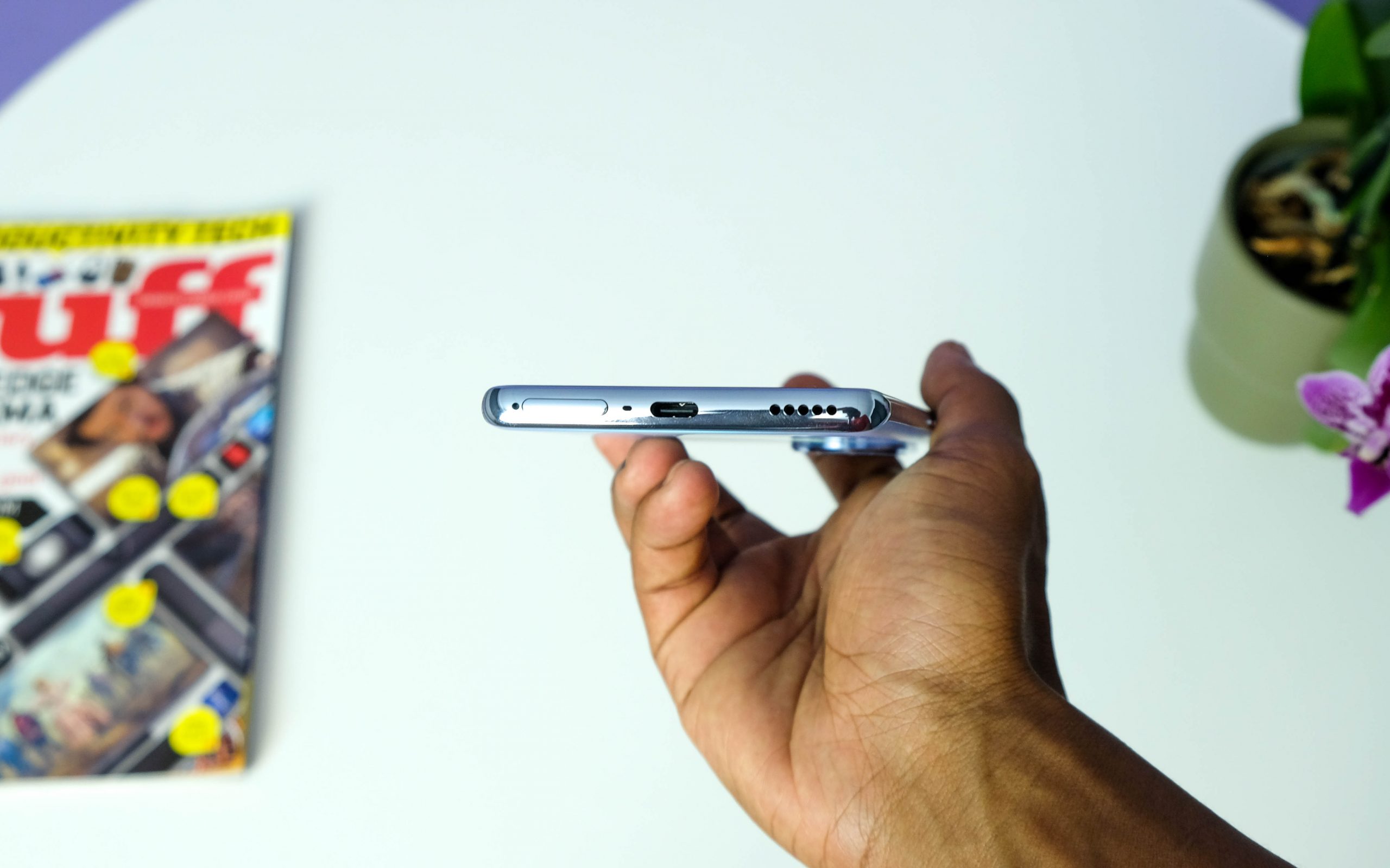 Oppo has stuck as much as is feasible into the Reno 10. USB-C takes care of charging, bracketed on the bottom edge by a SIM tray and speaker vent. The physical keys are along the upper right edge and there’s a lonely little IR blaster at the top. If you were hoping for some wired headphone love, you’ll have to snag yourself a USB-C-to-3.5mm adaptor, unfortunately.