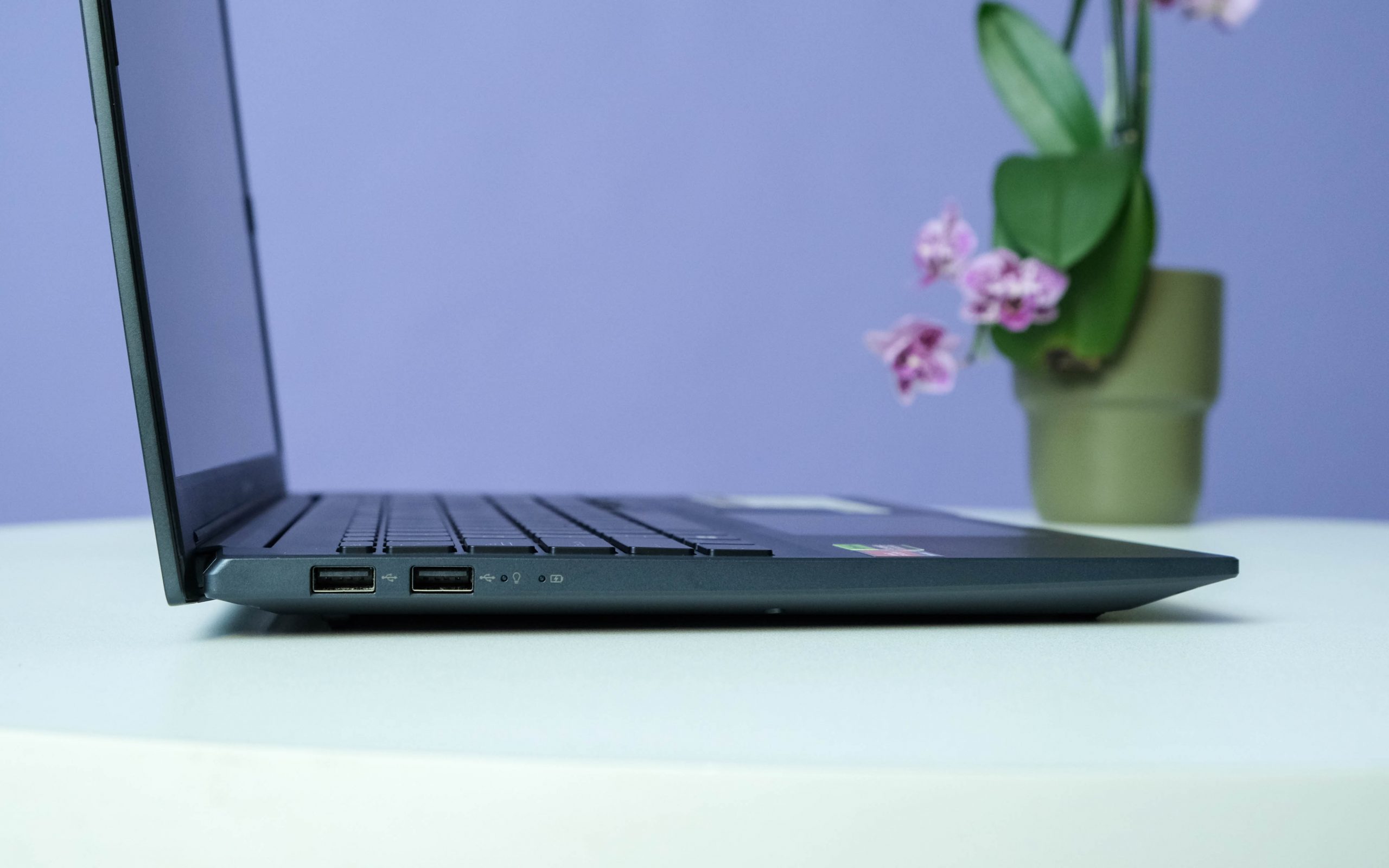 The Vivobook Pro 15 for 2023 is as fully loaded as it gets in the third decade of the 21st century. The compact body is ringed with ports ideally suited to a modern accessory loadout. Dual USB-A ports live along the left edge. The right hosts a single USB-C, a full-sized HDMI, a charge port, a 3.5mm input, and a microSD card slot. There’s also a multifunction USB-C, useful as a peripheral host or as a second charge port. Connecting a MacBook Air charger won’t top the Pro 15 up as quickly as the included 150W charger but it’ll keep you from missing out on that urgent meeting you forgot about.