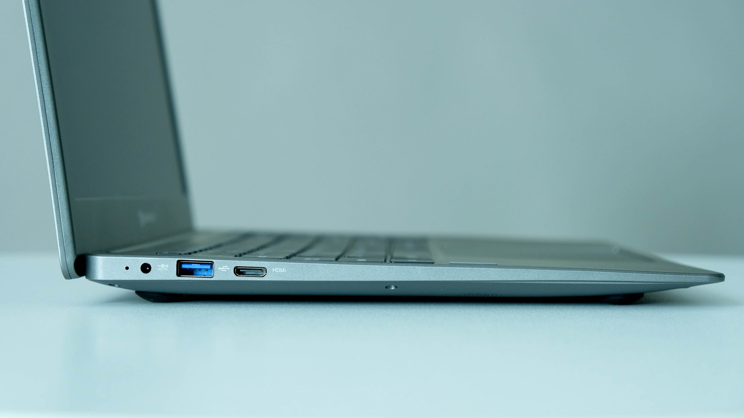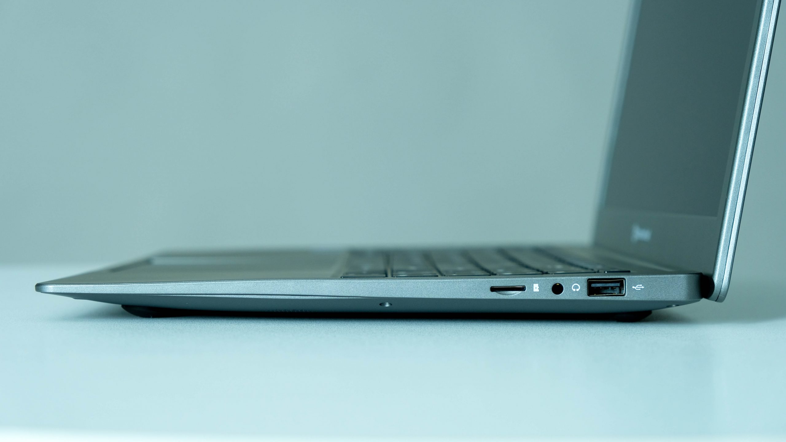 The bare minimum of ports adorn the two short edges. The left has the power input, a USB-A (3.0), and a mini-HDMI. The right-hand edge has a less speedy USB-A, a 3.5mm audio jack, and a microSD card slot. There’s one thing missing in action and that’s a USB-C port. Its absence is notable, given that the smaller McLaren C1 managed to include one.