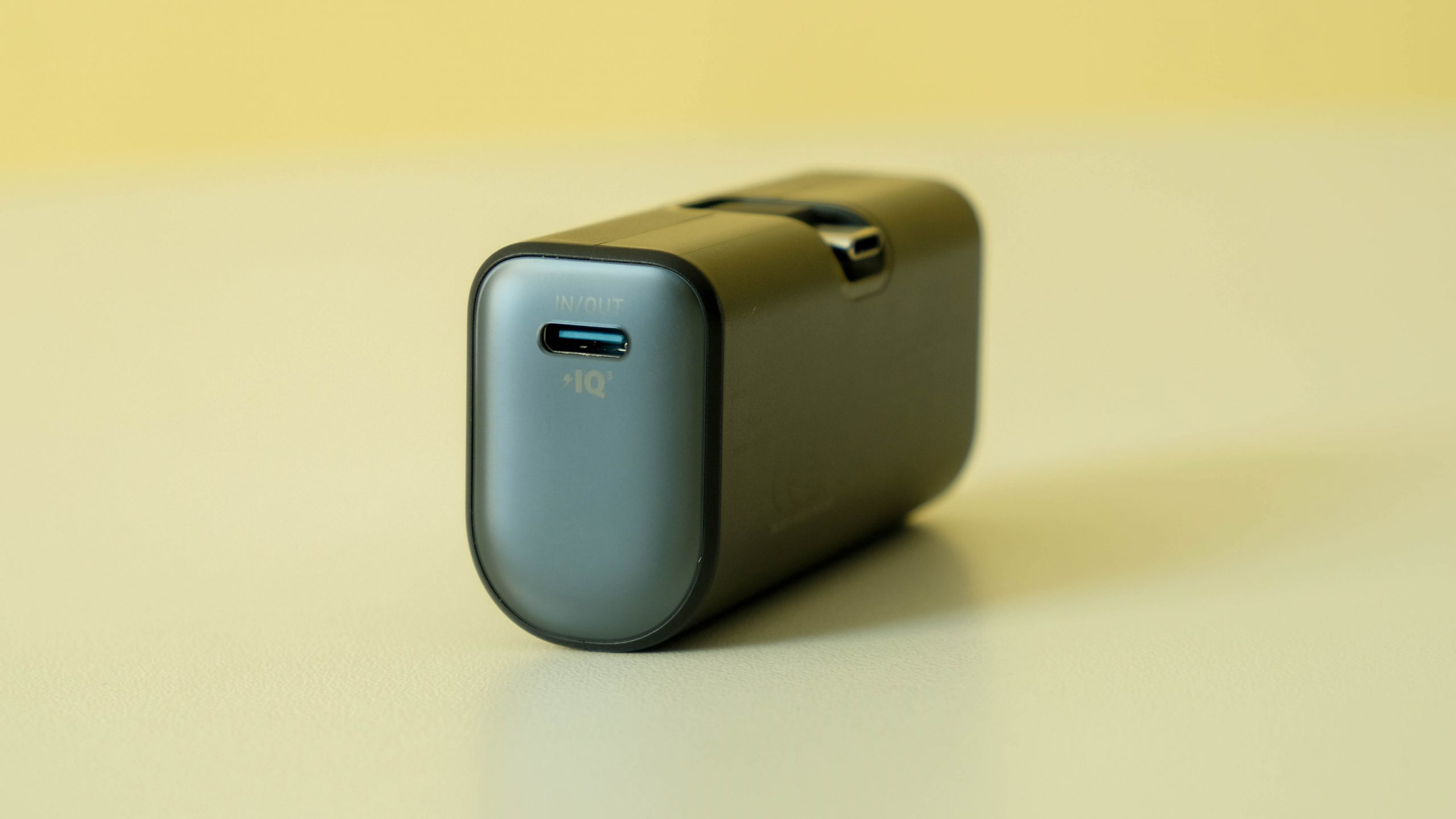 The design for this battery is as simple as it gets. The rounded rectangle hosts a charge input (USB-C) on one end and a single button on the other. As far as we can tell, this button’s sole function is to turn on the strip of lights on one of the Anker Nano’s long edges. Up top is a flip-up USB-C connector that you’ll use to plug this battery into your (likely Android or iPhone 15) device. The only way it gets easier to use is if it’s wireless but then you’d lose some of the charging speed.