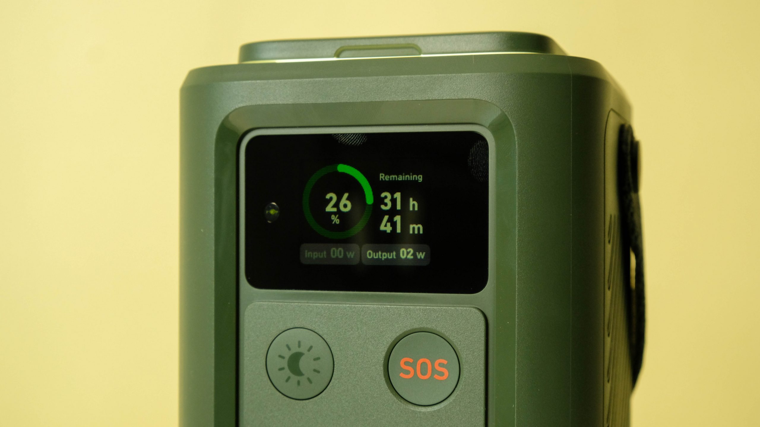 Reinforcing the rugged impression the 548 conveys is a camouflage green you’d expect to find in a PTSD-stricken soldier’s flashbacks. The unit’s dense canvas strap is also reminiscent of army gear that spends time in the field. Then there are the glow-in-the-dark accents on the battery’s sides that mean you’ll have no trouble finding it in a dark caravan.
