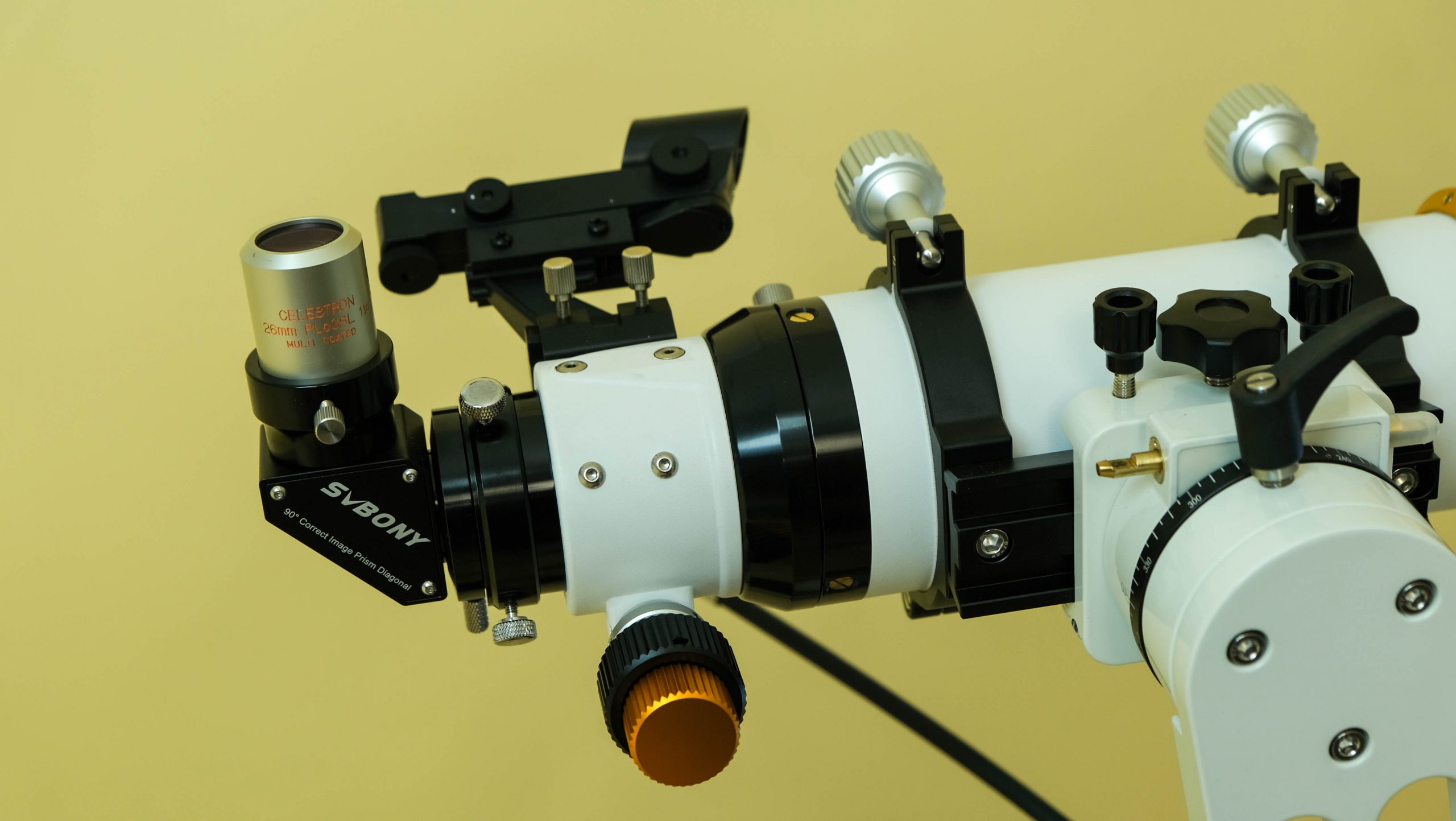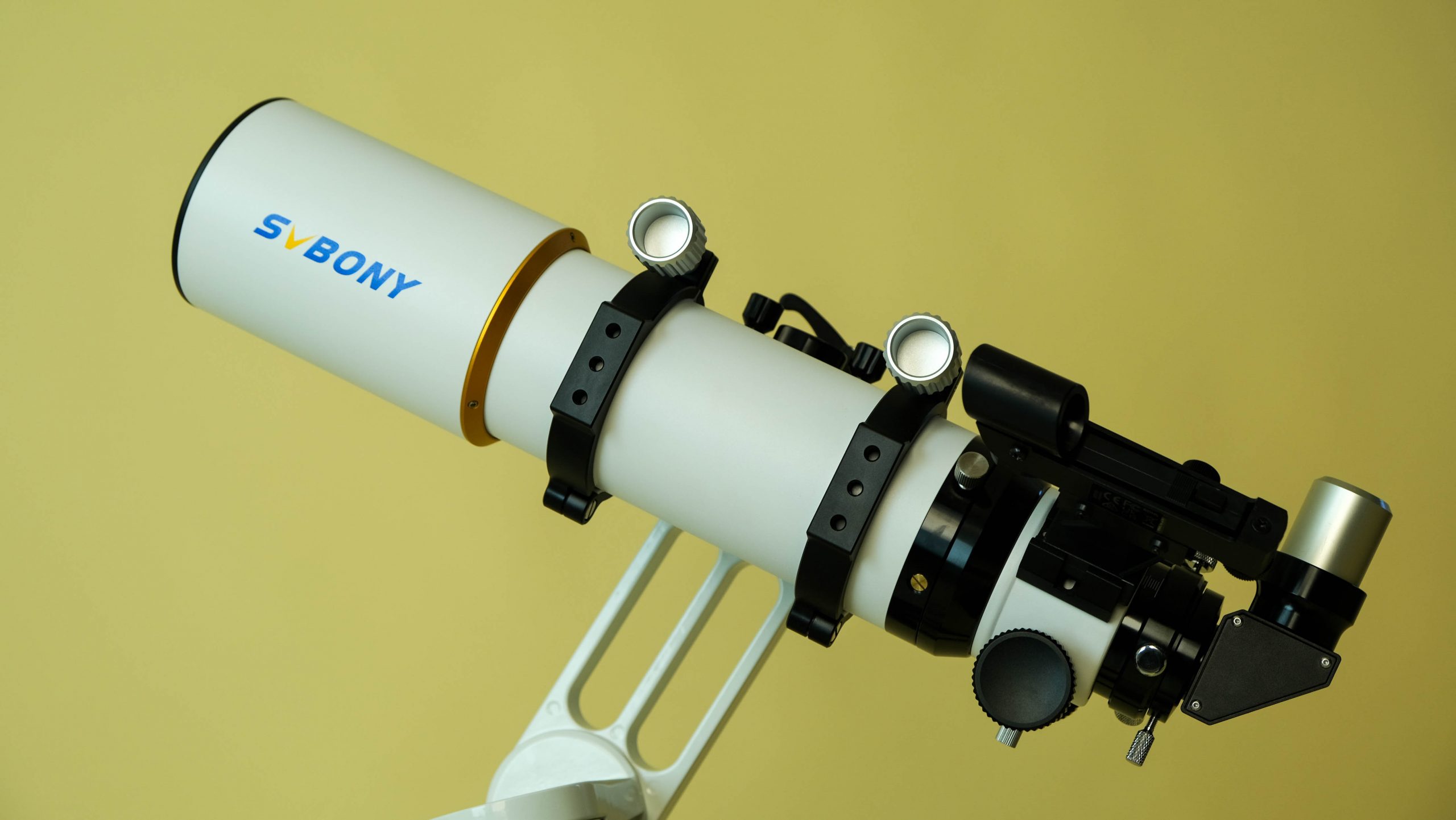 The ED glass objective — the single element of it — minimises chromatic aberration by bringing converging light waves (blue and red) to the same focal point. This is an issue with shorter achromat refractors and normally results in a blue or purple fringe around bright objects like Jupiter or the Moon. The S-FPL51 here lets Svbony keep the aggressive light cone without this fringing taking place.