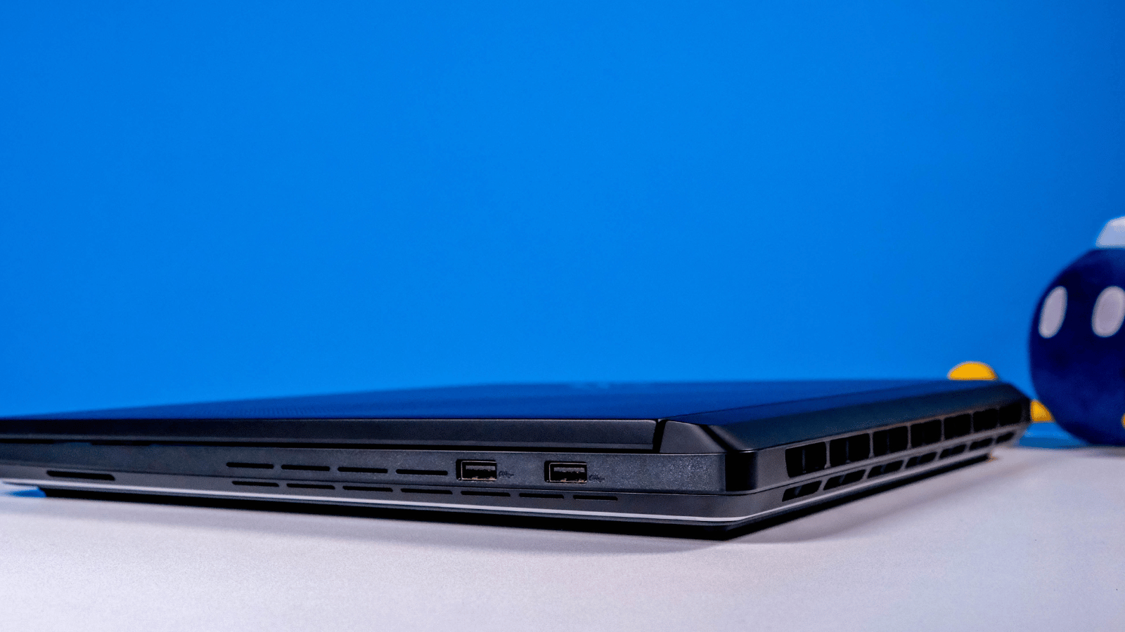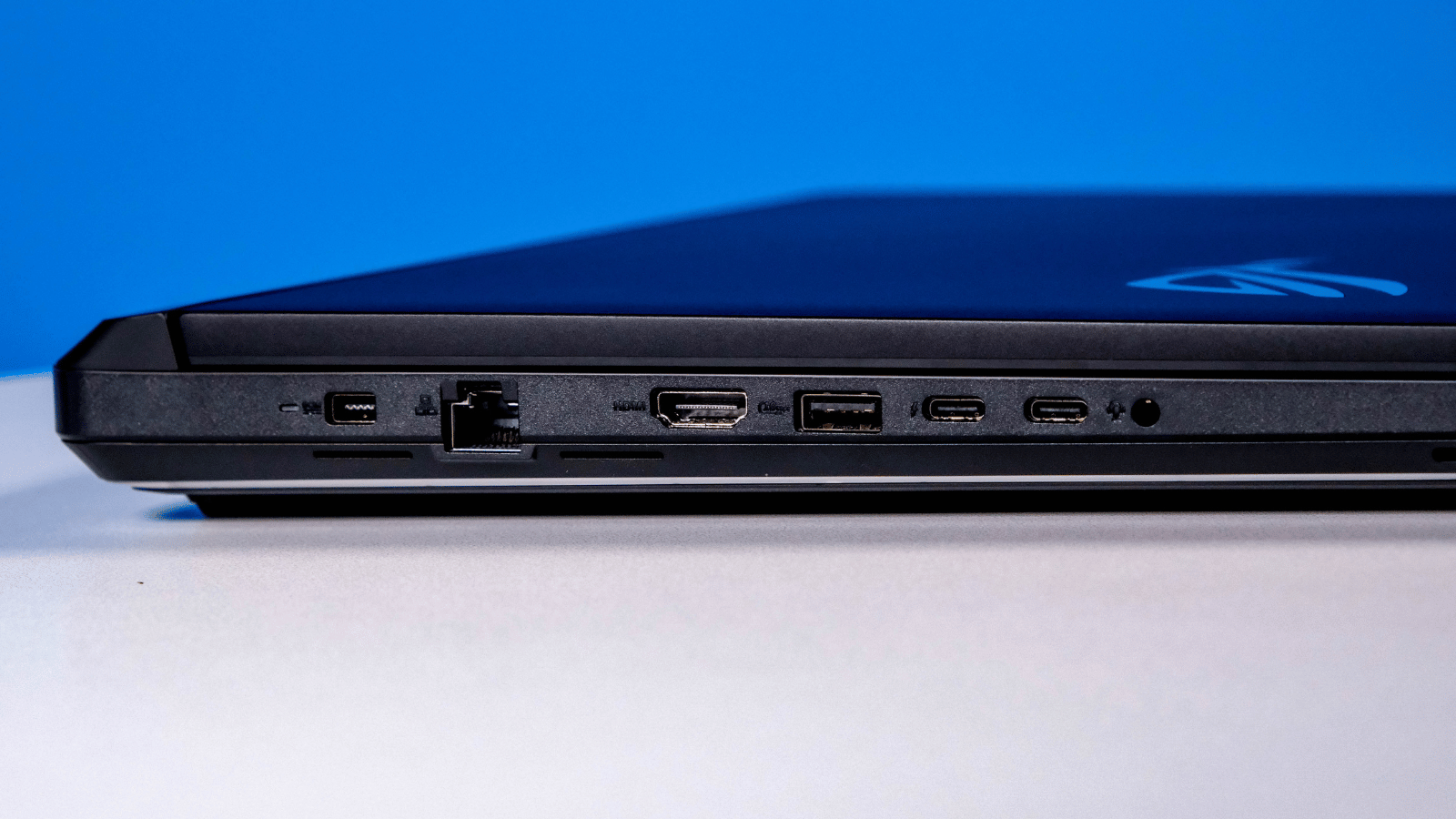 As far as connectivity goes, there is a decent selection of ports, all of which are found along the left and right sides. The rear is reserved for expelling hot air. On the left, you’ll find the proprietary power connector that the substantial 380W power brick will connect to, as well as ports for 2.5Gb/s Ethernet, HDMI 2.1, and a 3.5mm audio combo jack.