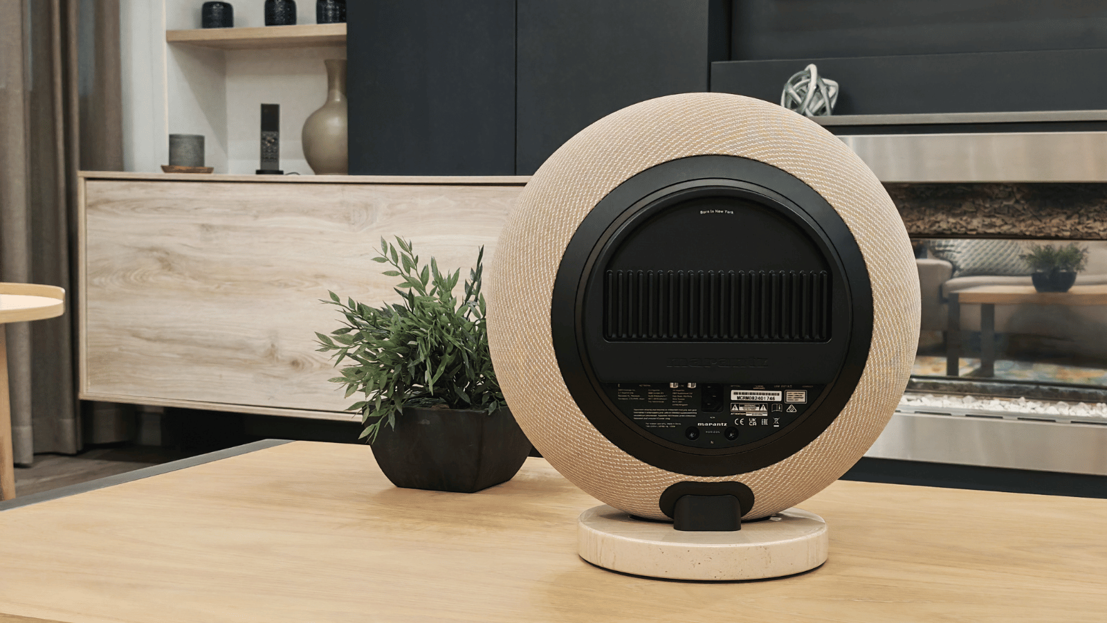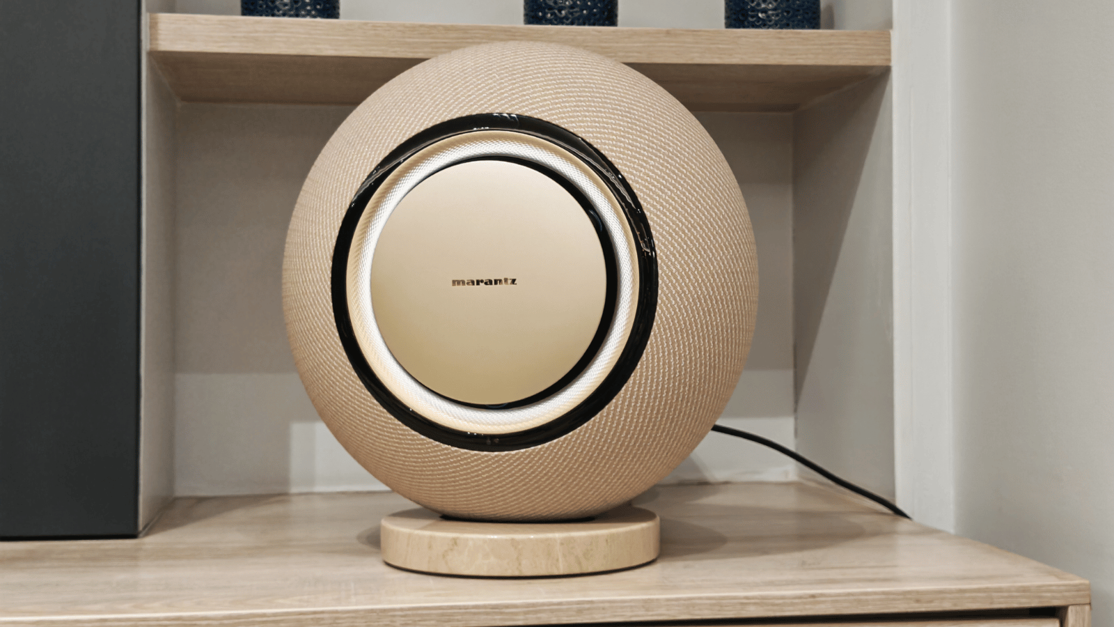 The rubber part of this Marantz tire is finished with what Marantz calls ‘Radiance 360° Seamless EcoFiber’, which is made from recycled ocean plastics. We’re sure the turtles are grateful. It sits atop a circular marble base that adds considerable heft but also means it’s less likely to fall over in a breeze (or from the tug of a toddler).