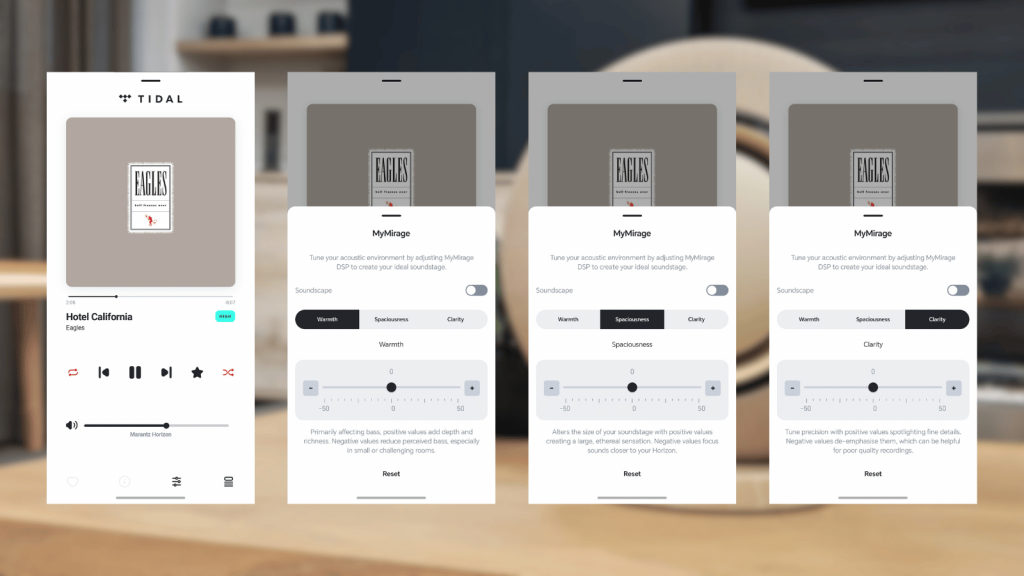 The Heos app allows you to pick between three sound modes – ‘Auto’, ‘Sound Master’, and ‘My Mirage’. The first is self-explanatory and what we used for most of our testing, while the last one gives you a decent amount of control over how you’d like your music to sound, with sliders to change the warmth, spaciousness, and clarity.