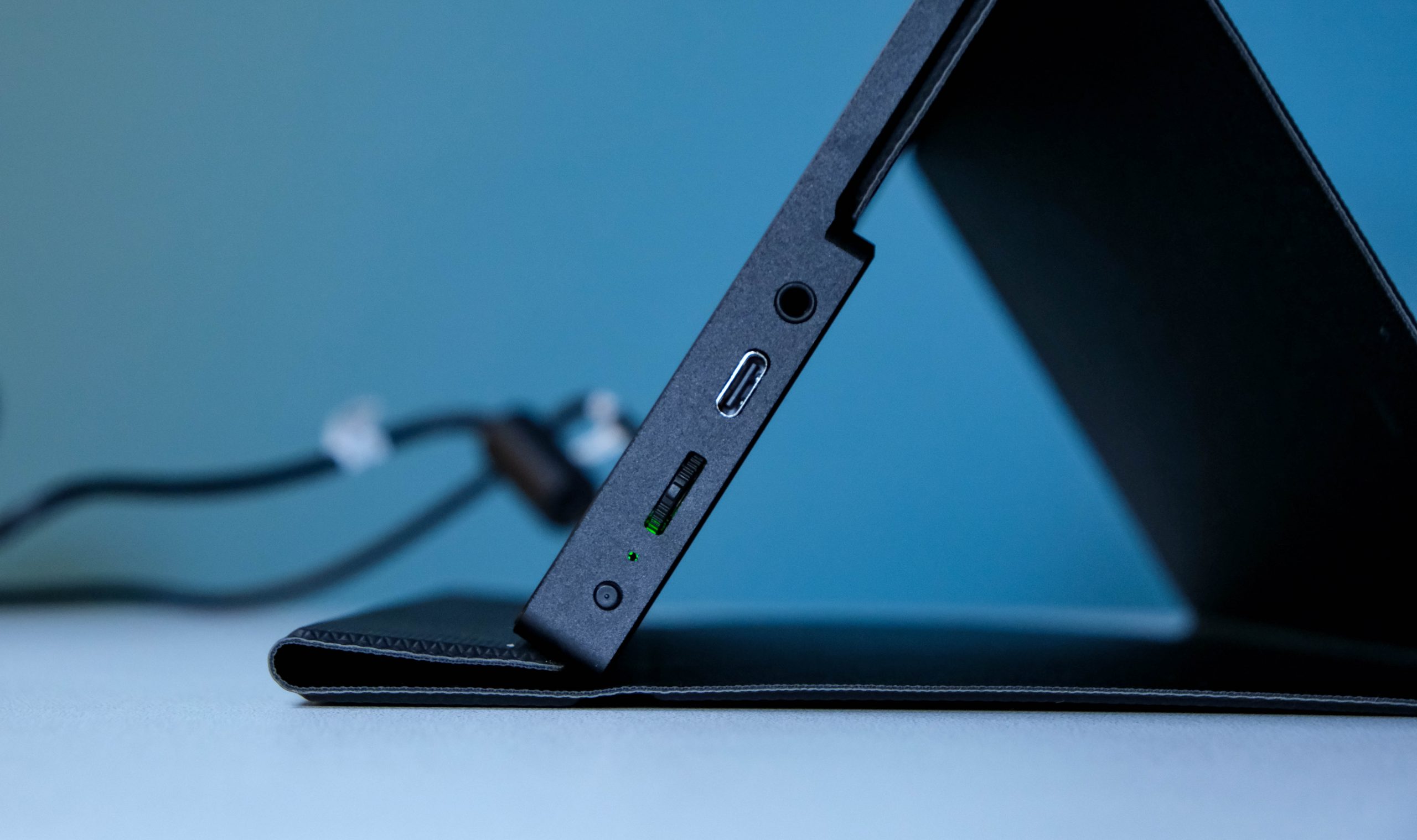 There are more ports on Acer’s screen than you’d find on one of Apple’s MacBook Airs. The lower left edge has a mini-HDMI and dual USB-C inputs, the lower right features a 3.5mm input, a USB-C input, and the power button. A manual key for making changes to the Acer PM161QT’s screen settings, in the manner of regular computer monitors, also lives here.