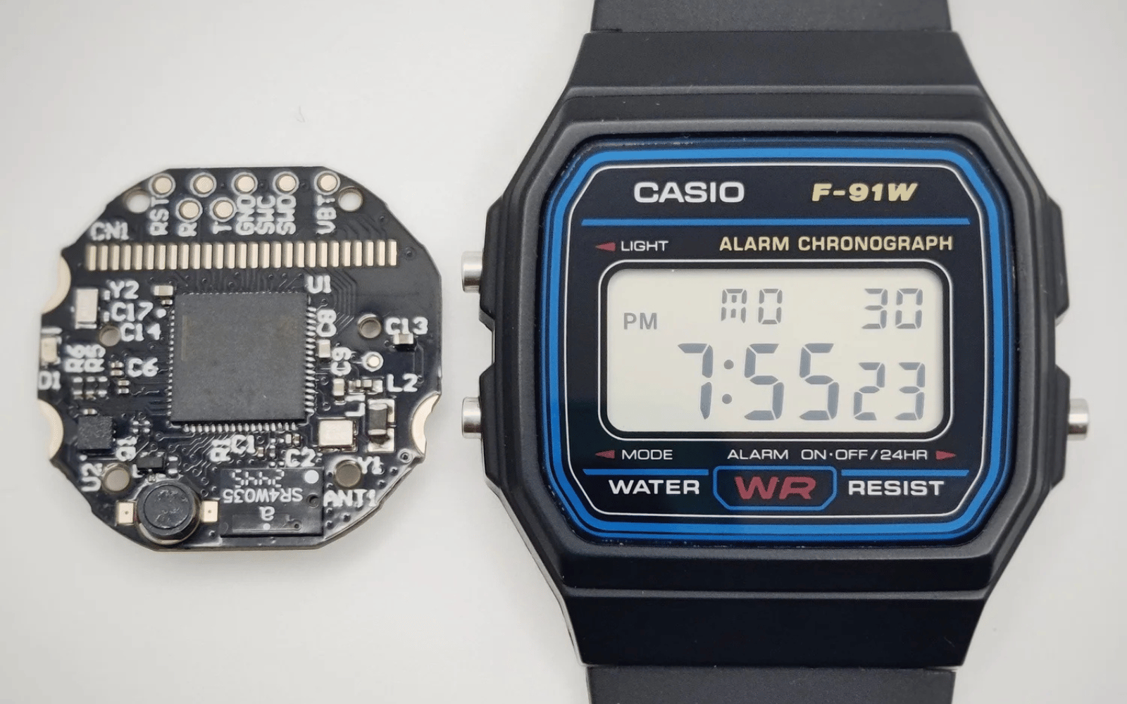 Of course, securing the upgrade — the Ollie Watch One — will cost significantly more than purchasing a new version of one of the supported watches. The main board replacement, which can be dropped into the case of a FR-F91W, A158W, F-84W, A159W, A171W, or W-59, will set retro fans back R960 before shipping the upgrade over from Canada.