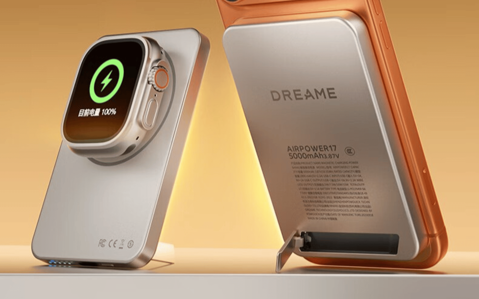 There are two versions of the Dreame Air Power 17 inbound. Both are the same basic size (103 x 58.4mm), with the 5,000mAh edition of the power bank measuring 8mm thick to the 10,000mAh model’s 12.8mm. That’s plenty low-profile enough to let users keep them handy, especially since the Air Power 17 also integrates a little kickstand in the battery’s body. You can top up while keeping an eye on the messages on your display.
