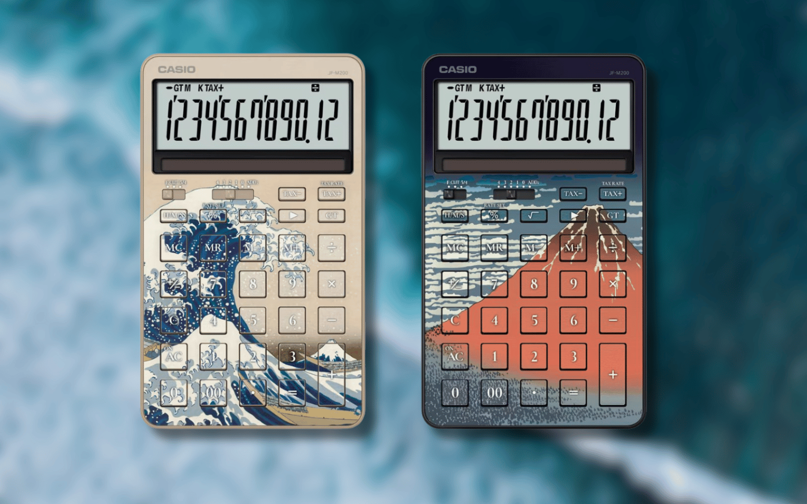 Casio’s JF-M200-TJ-KHK features visuals taken from Hokusai’s Great Wave, while the company’s JF-M200-TJ-KHG model uses Fine Wind, Clear Morning as its visual inspiration. The casing and keys for both calculators have been utilised for the designs, which are inkjet printed. Beyond that, they’re regular 31-key, twelve-digit LCD calculators. You won’t summon a tsunami by inputting a specific sequence of numbers or anything.