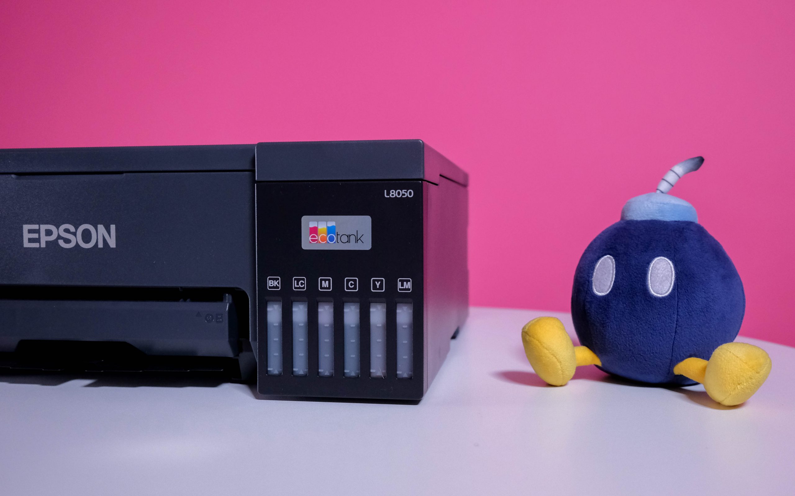 Epson’s EcoTank L8050 printer is an older unit — it’s been around for some time — but it’s still comparatively unusual, in that it’s just a printer. There’s no scan or copy function, which we’re used to seeing from Epson’s EcoTank lineup. It just accepts paper and spits out… paper with stuff on.