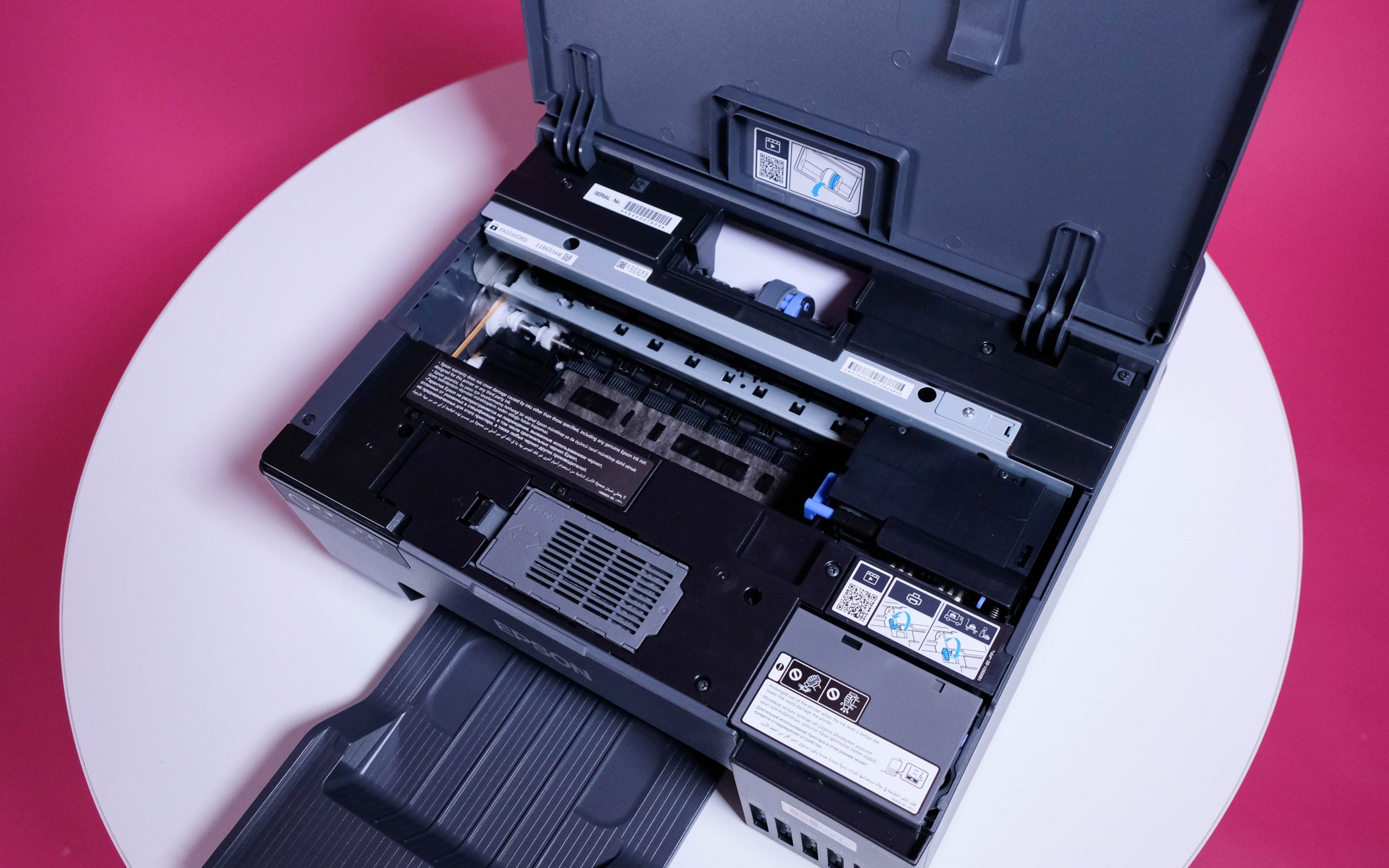 The only moving parts you need to concern yourself with are the top (paper receiving) and bottom (paper output) trays. If you’re poking your fingers anywhere else, the Epson EcoTank L8050’s lifespan will drop remarkably. Your fingers will possibly experience a similar fate.
