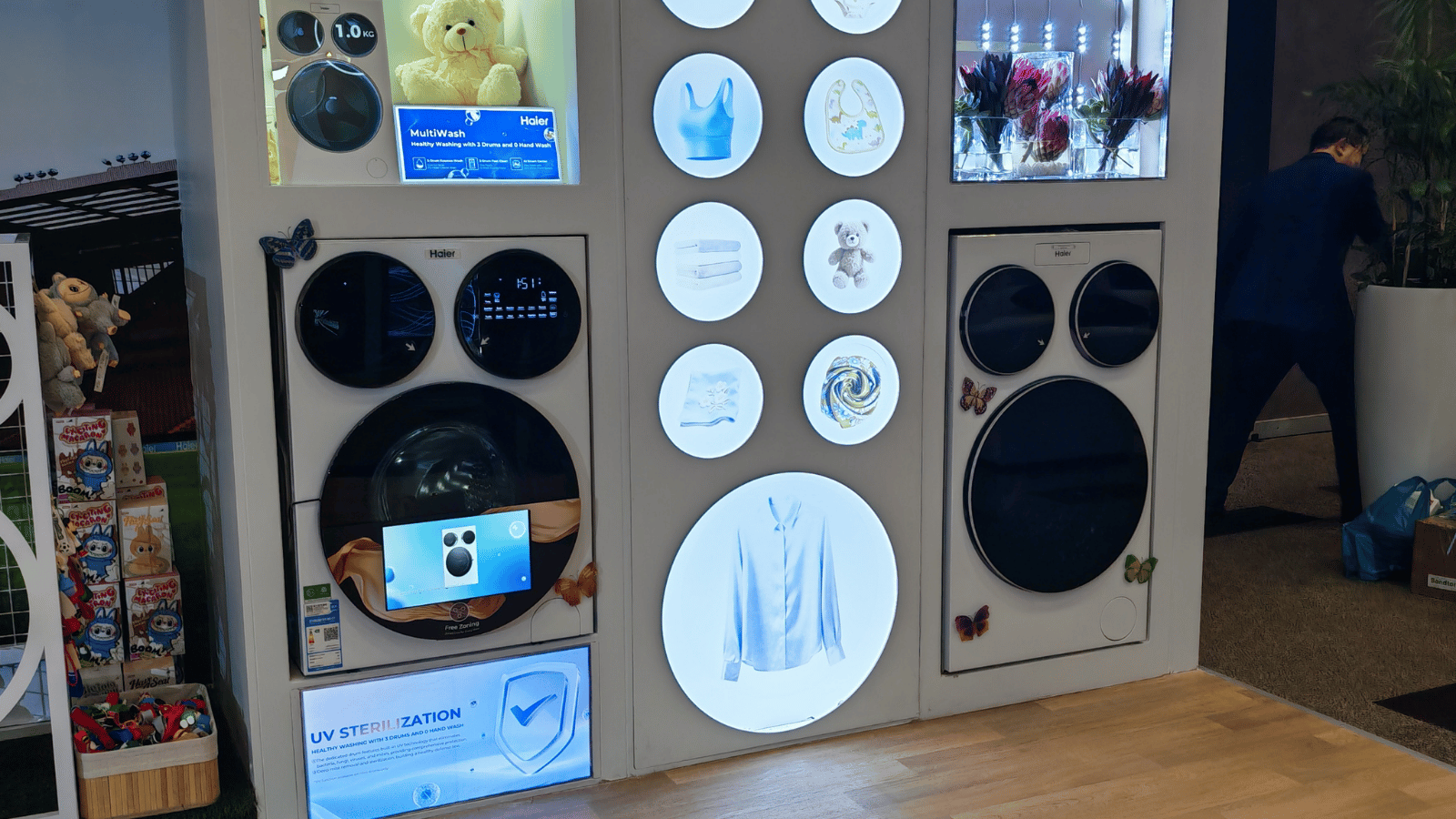 As for the actual appliances, what we saw was fairly impressive — although you’d expect as much from a brand’s official launch event. A three-drum washing machine and a smart fridge with a huge tablet in the door were standouts, along with a range of stick vacuums with their own auto-emptying stations (the kind you usually see in high-end robot vacuums).