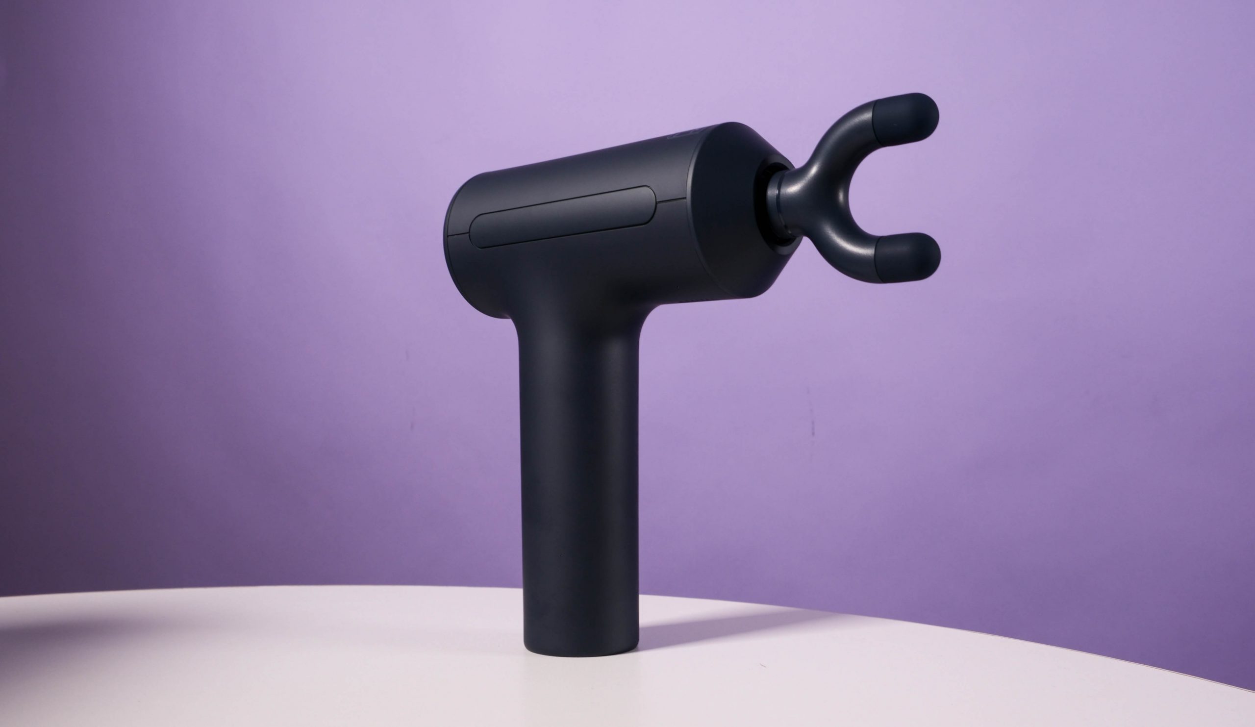 There are only a few ways to make a percussion gun, and Xiaomi has taken a similar route to the one chosen by Hyperice. The mostly-premium pistol-grip design makes it relatively simple to grip, while having ample space for the 2,450mAh battery. The controls are all on the back panel of the horizontal section where the motor lives. The base hides a USB-C port for charging the unit, and the front of the gun is where the trio of attachments fit.
